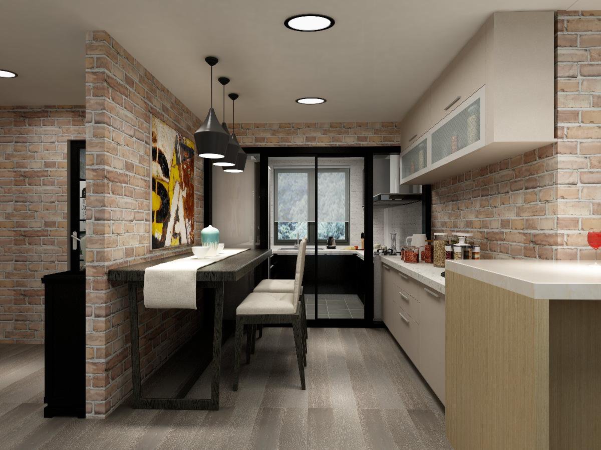 本案例是現代工業風,粗糙的磚墻、灰暗的水泥、和溫馨的原木飾面,這些看似老舊的既有元素,都成了空間中的獨特魅力。
